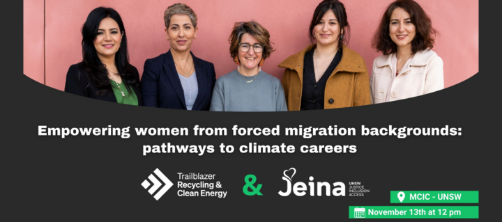 UNSW Justice Inclusion Access (JEINA) and the Trailblazer for Recycling and Clean Energy (TRaCE) have joined forces to offer an exciting range of scholarships and empowerment initiatives — Enterprise Academic, Higher Degree Research Program, and Work Integrated Learning (WIL) — specifically for women from forced migration backgrounds. These offers are designed to unlock pathways to leadership, research, and hands-on experience in the climate sector. Whether you’re just beginning your journey or looking to advance your career, this event is packed with valuable insights and opportunities to help you take the next step.